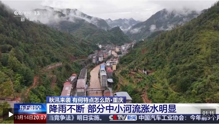 近期,我国西部地区降雨量远超同期正常水平。受此影响,位于长江上游的重庆市部分中小河流水位明显上涨。一些河流的水位已达到今年汛期以来的历史最高水平。受降雨持续影响,重庆市云阳县多条中小河流遭遇特大洪涝灾害。各地政府正在采取多种措施,确保人民群众生命财产安全,包括协调水电站泄洪、加大巡查力度等。受强降雨影响,云阳县尼溪河水位10月13日升至300.42米,创今年入汛以来最高水位。当天下午,记者在云阳县尼溪市亲眼目睹,尼溪河不仅浑浊,而且水流湍急,水流湍急。水位明显上升。多个小水电站正在进行泄洪作业。重庆市云阳县二溪镇水利官熊康:我区四座小水电站同时开始泄洪。我们驻扎人员在西河沿岸巡逻,时刻关注水位变化。据重庆市水文台消息,上午8时起10 月 13 日至上午 8 点10月14日,重庆市黔江、淡水、石柱、武隆、南川5个区州出现大雨,其余地区有小到中雨,局地大暴雨。受降雨影响,重庆市16条中小河流水位上涨1至3米。水利局预计,渝东北部部分中小河流可能出现不同程度水位上涨。上午 8 点至下午 4 点米。 10 月 14 日至上午 8 点10月15日,当地水利部门强化任务,协同气象部门等部门,实时监测水情,及时发布预警,确保安全汛期。今年秋季洪涝灾害的特点是大面积洪水,多条河流超过警戒水位。今年秋季洪水有哪些特点?与往年有何不同?据水利部介绍,今年秋季汛期,暴雨天气多、积雨量大、多条河流超警戒水位、大面积洪涝灾害。 8月底以来,秋洪区已出现9次强降雨。 10月1日以来,黄河中下游、海河、长江上游秋雨区保持稳定。累计ra海江、黄河流域降雨量分别为111毫米、105毫米,均为1961年以来同期最高。长江、汉江上游累计降雨量115毫米。这是1961年以来同期第四高。 水利部:多条河流超警戒水位,洪水规模较大。截至8月底,四川、重庆、陕西、山西、河北、内蒙古、甘肃等省区市共有130条河流出现超警戒水位洪水,陕西省的汉江、渭江、汾河、汾河等多条主要干支流被淹没。 山西省胡套河流域。其中,黄河及其支流渭河发生洪水1次,汉水发生洪水6次。长江中上游地区秋季防洪形势黄河中游地区情况严重。目前长江、黄河流域秋洪总体情况如何?水利部也进行了调查、研判和部署。预计下周汾河、渭河、黄河中游、汉江中上游、长江上游支流及三峡水库周边地区将出现一到两次降雨。部分监测站可能出现超警戒水位或编号洪水。长江中游、黄河中游地区秋防形势复杂严峻。其中,水利部正在部署黄河中游、一、二水库防洪工作,需要科学周密调度汾河防洪工作呃,蓄洪,减轻中下游的防洪压力。加强汉江流域水库统一联合调度,全力防止汉江流域特大洪水。微调丹江口及上游水库群有序蓄水,确保实现丹江口及主要水库满蓄目标。长江干流防洪,要科学确定水库群使用顺序,全力避免长江中下游干流和库区河流发生超警戒洪水,确保三峡及上游管理水库蓄水充足。